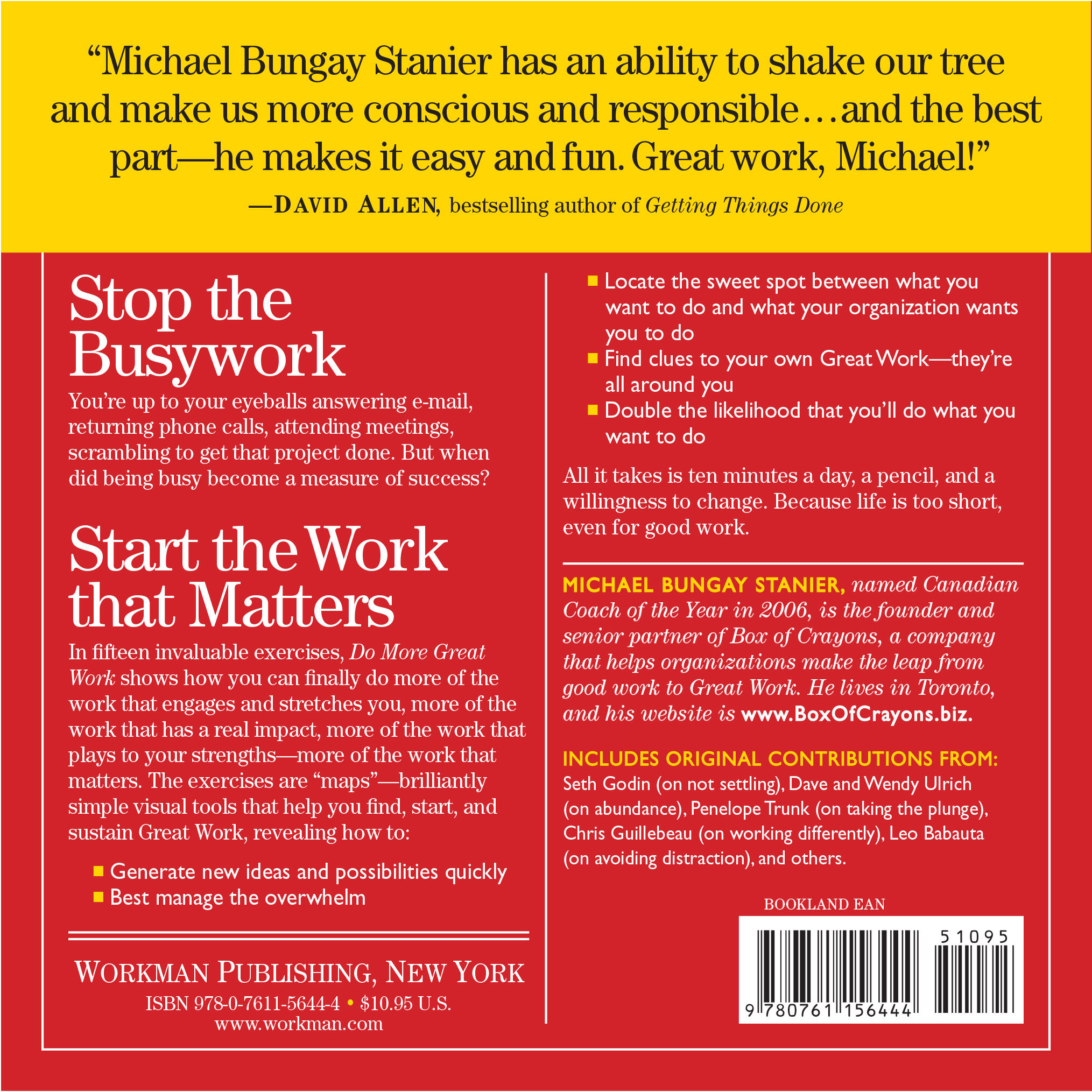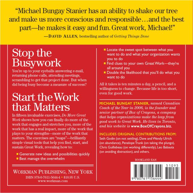 You work hard. You put in the hours. Yet you feel like you are constantly treading water with “Good Work” that keeps you going but never quite moves you ahead. Or worse, you are mired in “Bad Work”—endless meetings and energy-draining bureaucratic traps.Do More Great Work gets to the heart of the problem: Even the best performers are spending less than a fraction of their time doing “Great Work”—the kind of innovative work that pushes us forward, stretches our creativity, and truly satisfies us. Michael Bungay Stanier, Canadian Coach of the Year in 2006, is a business consultant who’s found a way to move us away from bad work (and even good work), and toward more time spent doing great work.