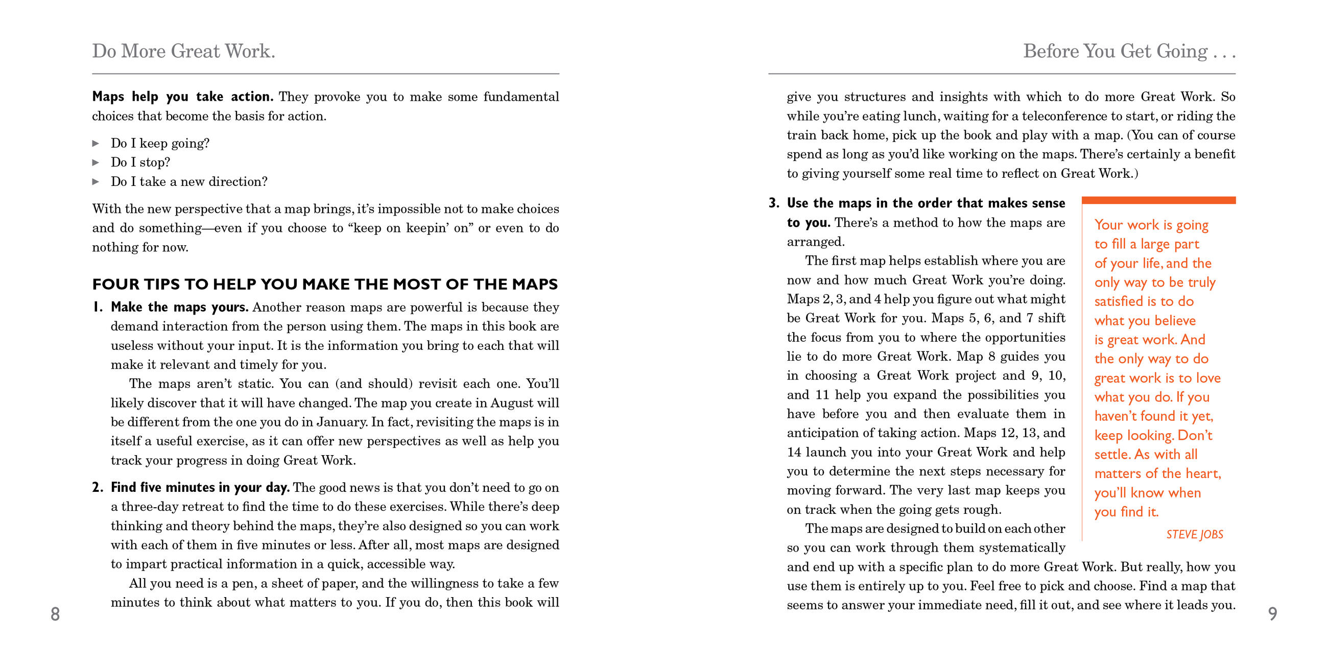 The exercises are “maps”—brilliantly simple visual tools that help you find, start and sustain Great Work, revealing how to:
