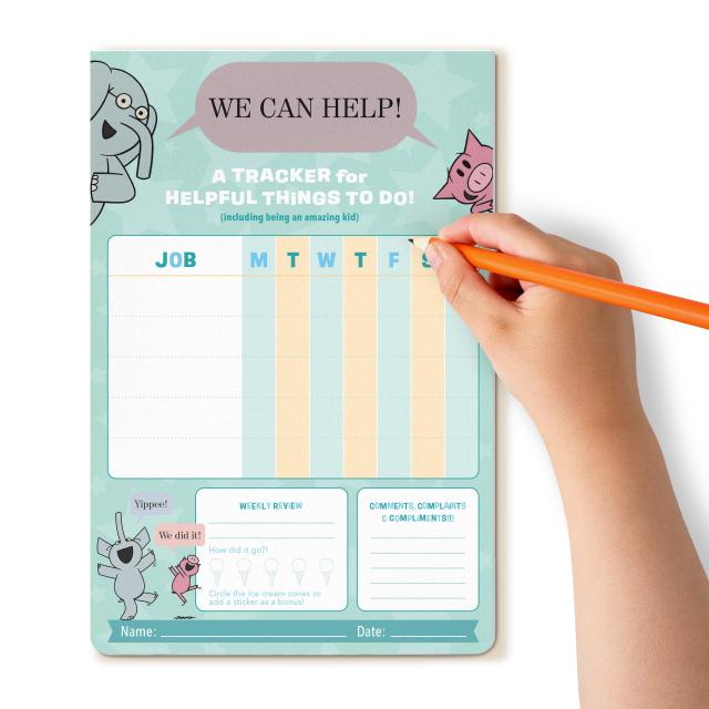 Move over, plain-old chore charts! This four-color task tracker, featuring Mo Willems’ iconic Elephant and Piggie characters, is bursting with personality and a sense of can-do fun for kids—and even grownups! Kids can feel a greater sense of control over their weekly routine as they write down their “jobs,” track their accomplishments, and personalize each sheet with stickers (100 to choose from!). Bonus: grownups will have an easier time doling out rewards and allowances with the pad as a guide!