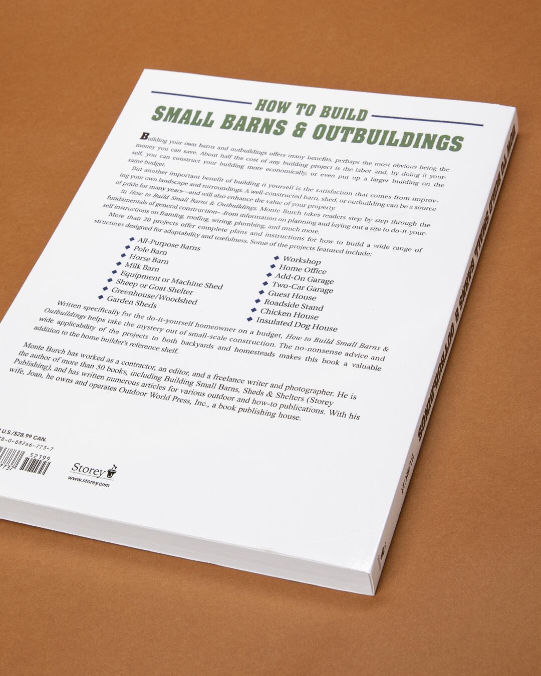 Taking the mystery out of the construction process, Monte Burch provides complete plans and step-by-step instructions for building more than 20 barns and outbuildings, including a greenhouse, equipment shed, horse barn, and even a small guest house. Stressing the adaptability and utility of the designs, this guide covers everything from initial planning and laying out a site to framing, roofing, wiring, and plumbing. Save on construction costs, enhance your property value, and take pride in a job well done as you build your own custom-tailored barn.