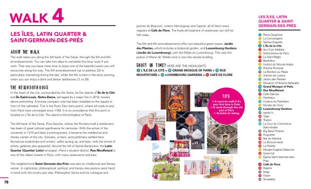 - Get to know the real Paris on six customizable walks: Discover a corner café and people-watch from the terrace over lunch. Wander through the Latin Quarter and stroll through verdant public gardens. Visit world-famous museums and galleries like the Louvre or shop for vintage designer threads. Browse a Sunday market for fresh produce and relax in the park with a baguette and fromage under the gaze of the Eiffel Tower. Linger at a trendy restaurant in the up-and-coming Belleville, sip stylish cocktails by the Seine, and dance the night away at the best clubs in town