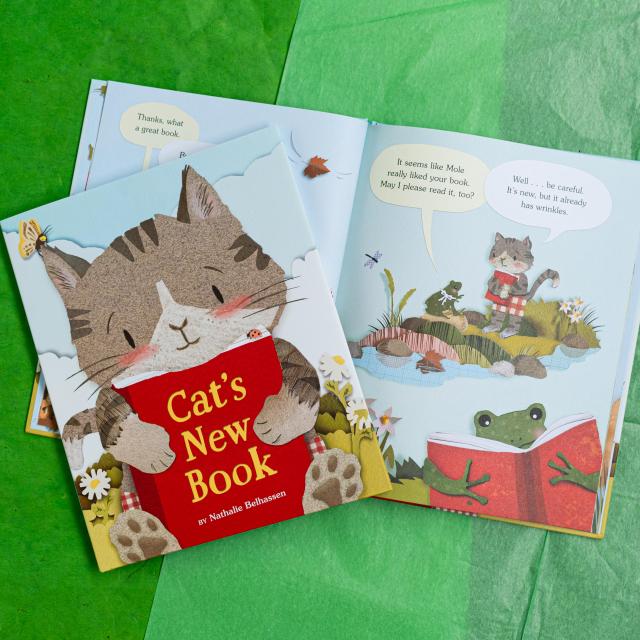 Cat’s brand new book has the cleanest cover and the smoothest pages. It even smells good! He can read it whenever he wants to because it’s all his, and he plans to keep it looking new forever. But then Mole asks to read it. And then Frog. And then Turtle. After so much sharing, Cat’s perfect new book is sandy and stained and…not so new anymore. This makes Cat sad. Will a new perspective from Squirrel be enough to teach Cat about what really make a book special?