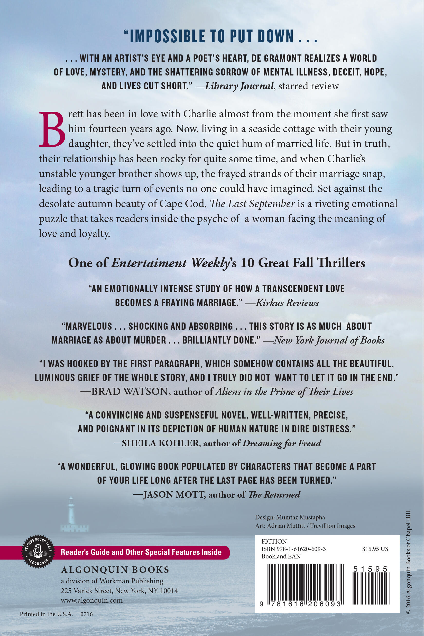 “Full of poignant prose, a brilliant presentation of Eli’s illness and the toll it takes on his family, and a plot that ebbs and tides with the ocean and sand dunes, The Last September in non-put-down-able. Sleek and elegant, The Last September is a must read.”