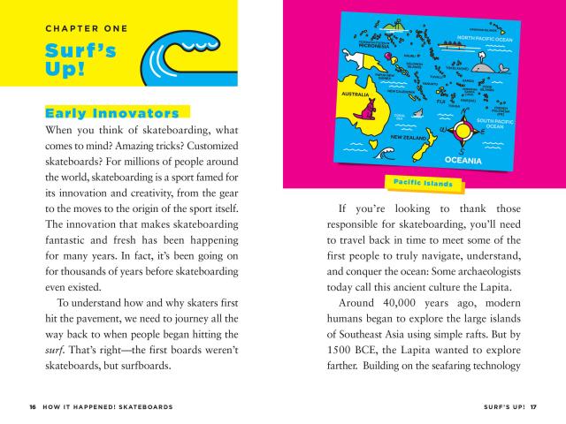 Did you know that skateboarding used to be called sidewalk surfing and the sport can trace its roots back centuries? Or that today there are more than 3,000 skate parks in the US alone? Get ready to soar through the story of skateboarding from the science behind the decks to the history of the cool tricks skateboarders continue to create . . . and everything in between!