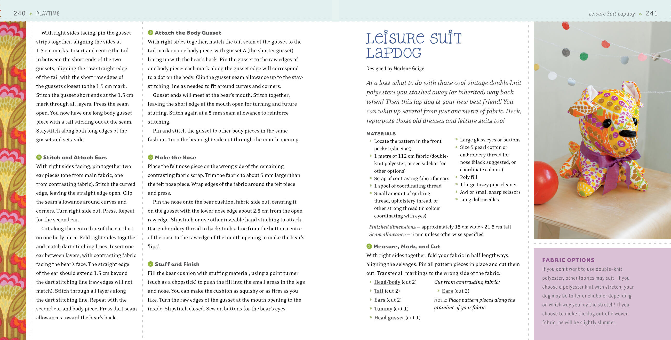 For both novice and accomplished sewers, this spiral-bound guide offers directions that are precisely, clearly, and buoyantly written as the authors share 101 sewing projects requiring only a yard of fabric, including apparel, toys, accessories (human and pet), dresser organizers, and stuffed animals. For each "recipe", the authors, in well-organized fashion, list necessary materials and then take the reader-crafter through clearly numbered, carefully explained directions to create a successful final product. For each project, too, a pattern schematic is matched on the opposite page with a full-color photograph of the finished project. This is a fundamental crafts book appropriate for most craft collections.