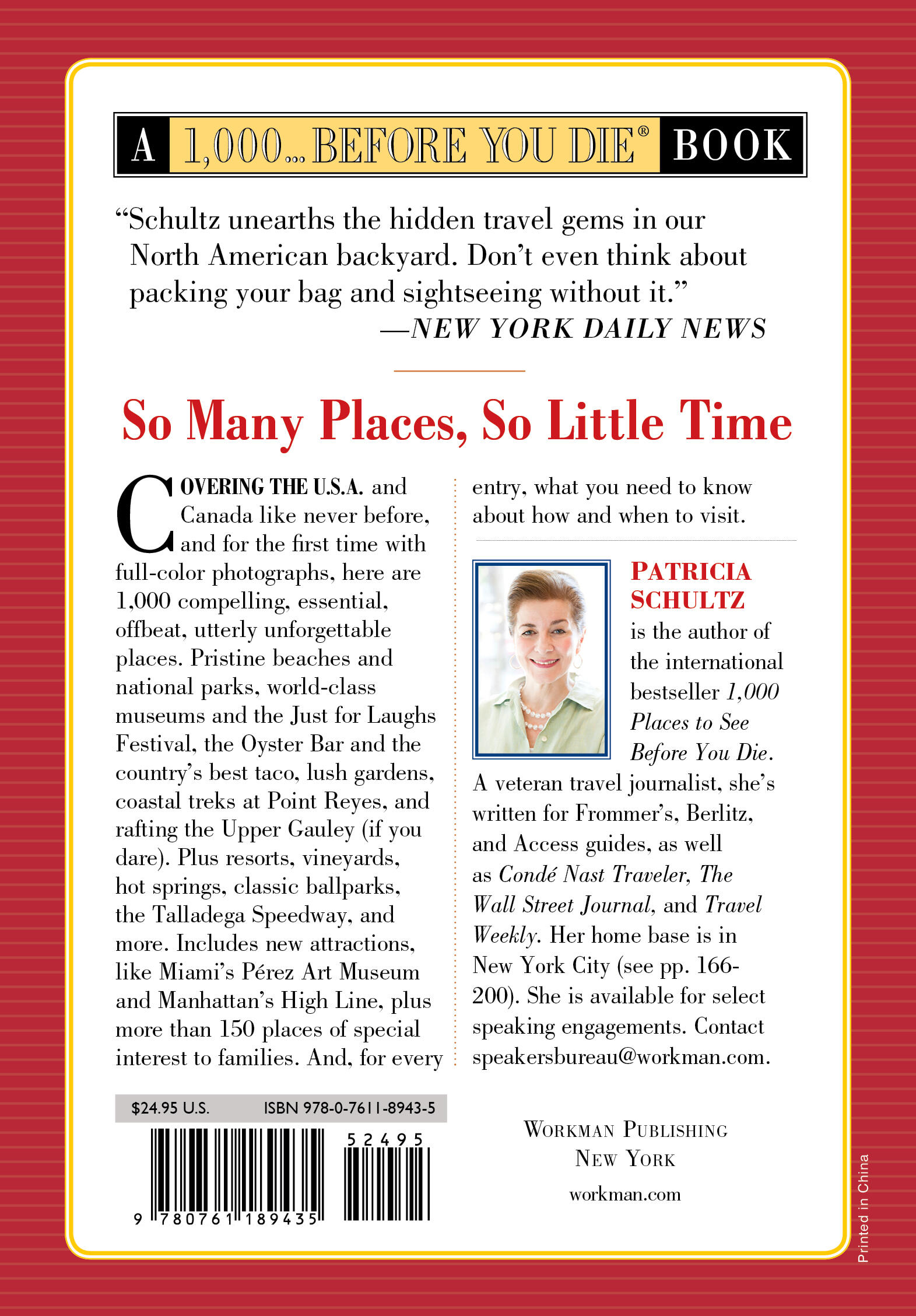 “Patricia Schultz unearths the hidden gems in our North American backyard. Don’t even think about packing your bag and sightseeing without it.” —New York Daily News