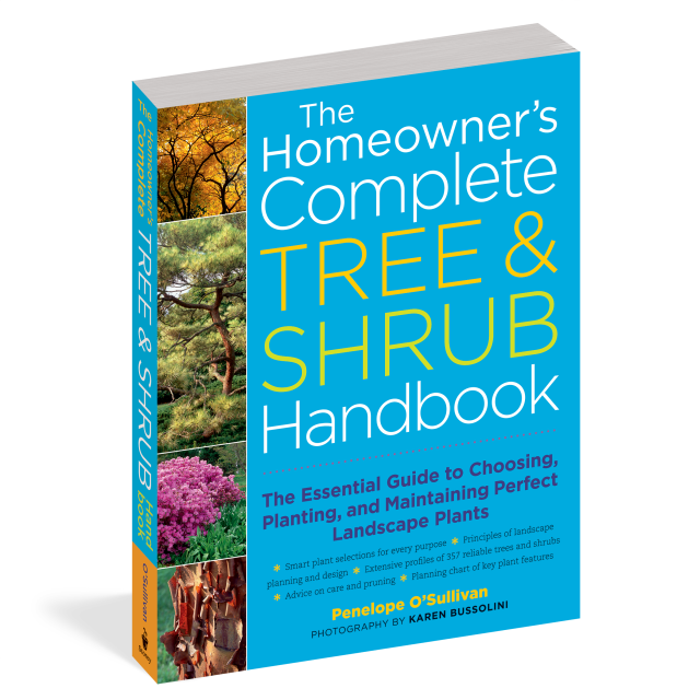 It's always hard to find exactly what you want in plant identification books. Not enough detailed photos, no mention of common problems, not enough emphasis on the best cultivars or plant sizes. The Homeowner's Complete Tree Shrub Handbook: The Essential Guide to Choosing, Planting, and Maintaining Perfect Landscape Plants by Penelope O'Sullivan (Storey Publishing, 2007) solves a lot of those problems. The introductory section discusses how to use plants in the landscape, then moves on to choosing the right plant for the right place, with excellent lists of trees and shrubs for sun shade, wet dry soils, etc. In addition, the author has lists you seldom see elsewhere: top choices for standout barks, colorful evergreens, unusual textures, striking silhoutettes.Another section on plant care covers major diseases, pollution-tolerant plants and also planting, pruning, and rejuvenating shrubs. Each entry in the A to Z list of trees and shrubs has a general plant description, an excellent section on landscape use, followed by "Designer's Choice" -- a listing of the best cultivars on the market. Photographs by Karen Bussolini would be quite helpful in identification.