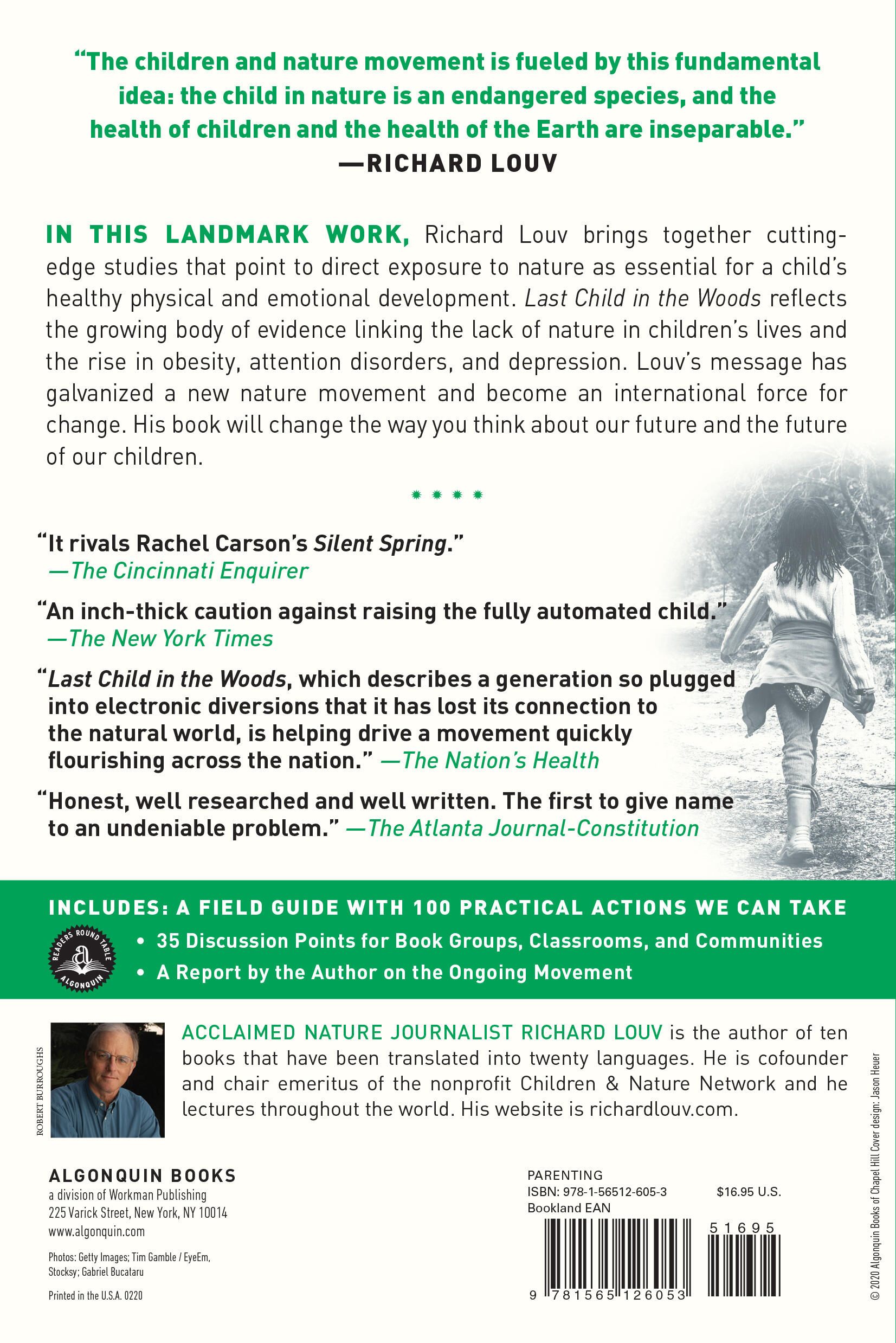 “Last Child in the Woods is the direct descendant and rightful legatee of Rachel Carson’s The Sense of Wonder. But this is not the only thing Richard Louv has in common with Rachel Carson. There is also this: in my opinion, Last Child in the Woods is the most important book published since Silent Spring.” —Robert Michael Pyle, author of Sky Time in Gray’s River