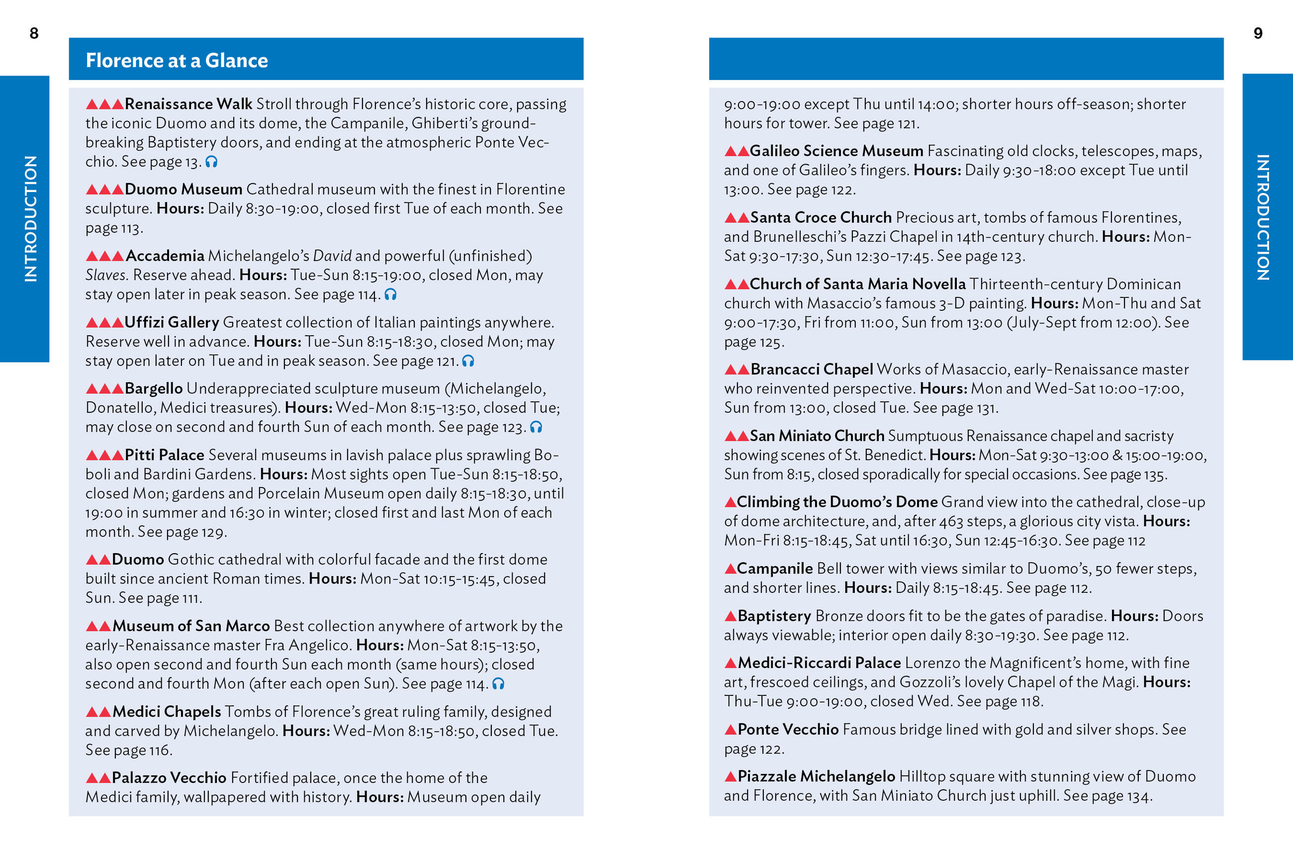 - City walks and tours: Five detailed self-guided walks showcase Florence’s essential sights, including the Uffizi Gallery, the Duomo, and Michelangelo’s David at the Accademia, plus specific recommendations for each neighborhood