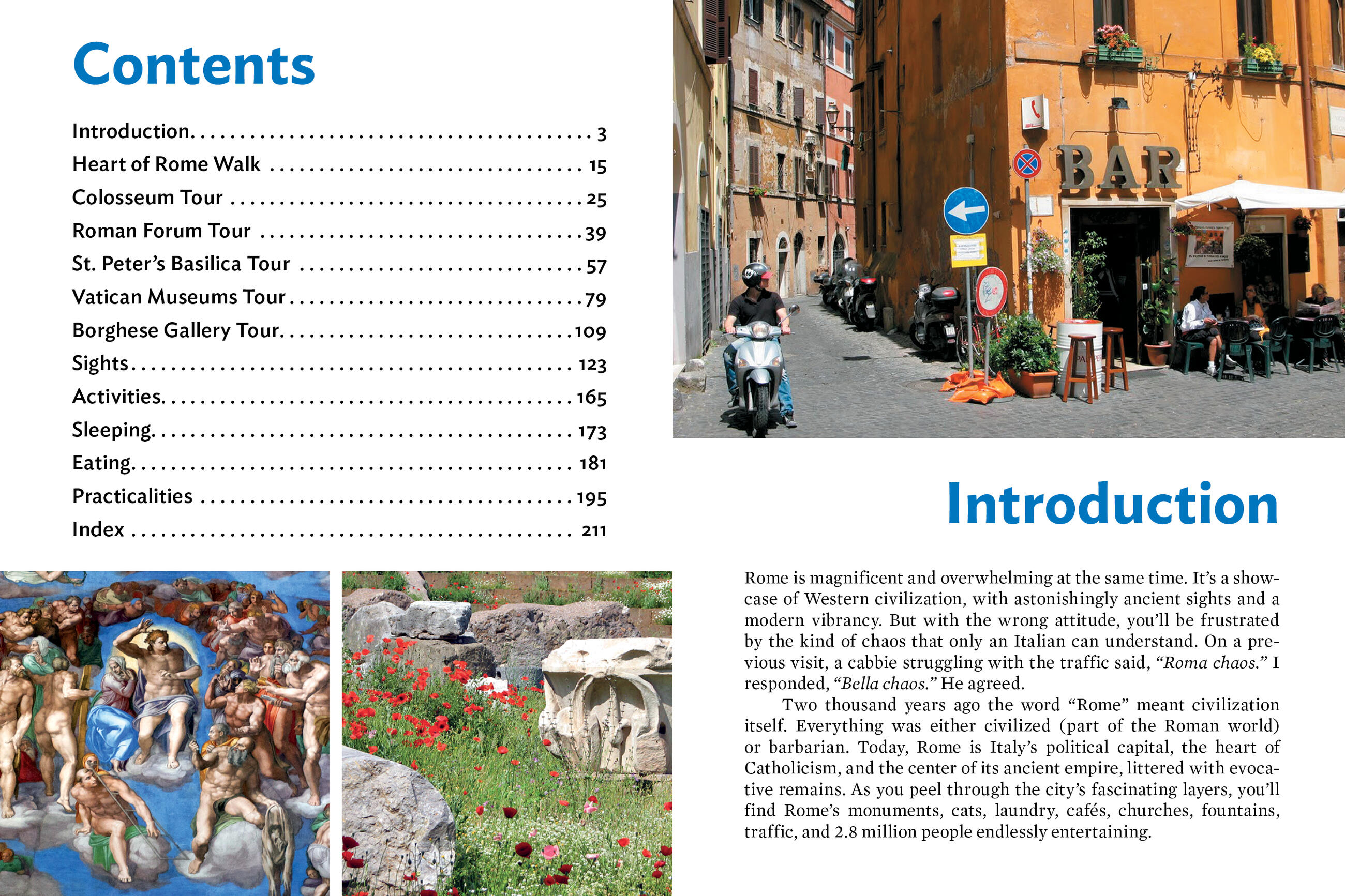 • City walks and tours: Six detailed self-guided walks showcase Rome’s essential sights, including the Colosseum, St. Peter’s Basilica, and the Vatican Museums, plus recommendations for each neighborhood