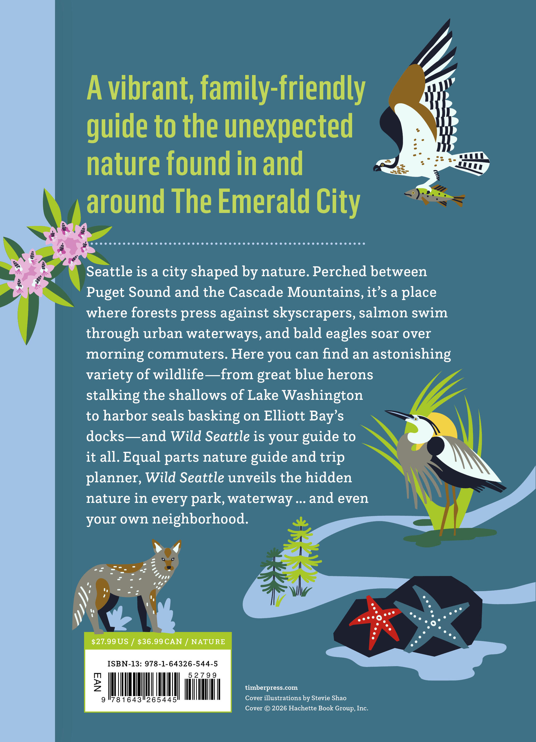 Seattle is a city shaped by nature. Perched between Puget Sound and the Cascade Mountains, it’s a place where forests press against skyscrapers, salmon swim through urban waterways, and bald eagles soar over morning commutes. Despite its reputation for tech and coffee culture, Seattle is also home to an astonishing variety of wildlife, from great blue herons stalking the shallows of Lake Washington to harbor seals basking on Elliott Bay’s docks, and Wild Seattle is your guide to it all. Equal parts nature guide and trip planner, Wild Seattle unveils the hidden nature in every park and waterway–and even your own neighborhood.