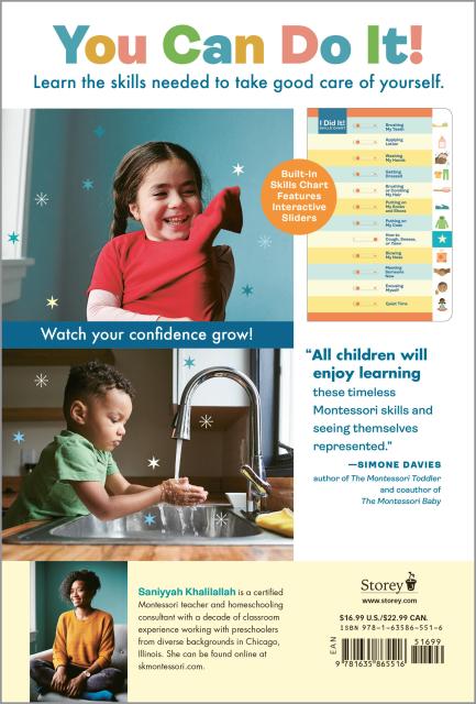 With a toddler-sized hairbrush, a mirror hung at just the right height, and the step-by-step photos in I Did It Myself!, children aged 2 to 5 are on the path to mastering self-care skills. From getting dressed to washing hands, brushing teeth, and applying lotion, each activity fosters independence, builds concentration, helps develop motor skills, and encourages responsibility. Inspired by the Montessori curriculum, the unique book format features an interactive skills chart that’s included on the inside back cover, with sturdy slider windows for each activity. This offers children the perfect incentive to make self-care a daily routine, as they complete each activity, slide the window, and confidently declare, “I Did It!”.