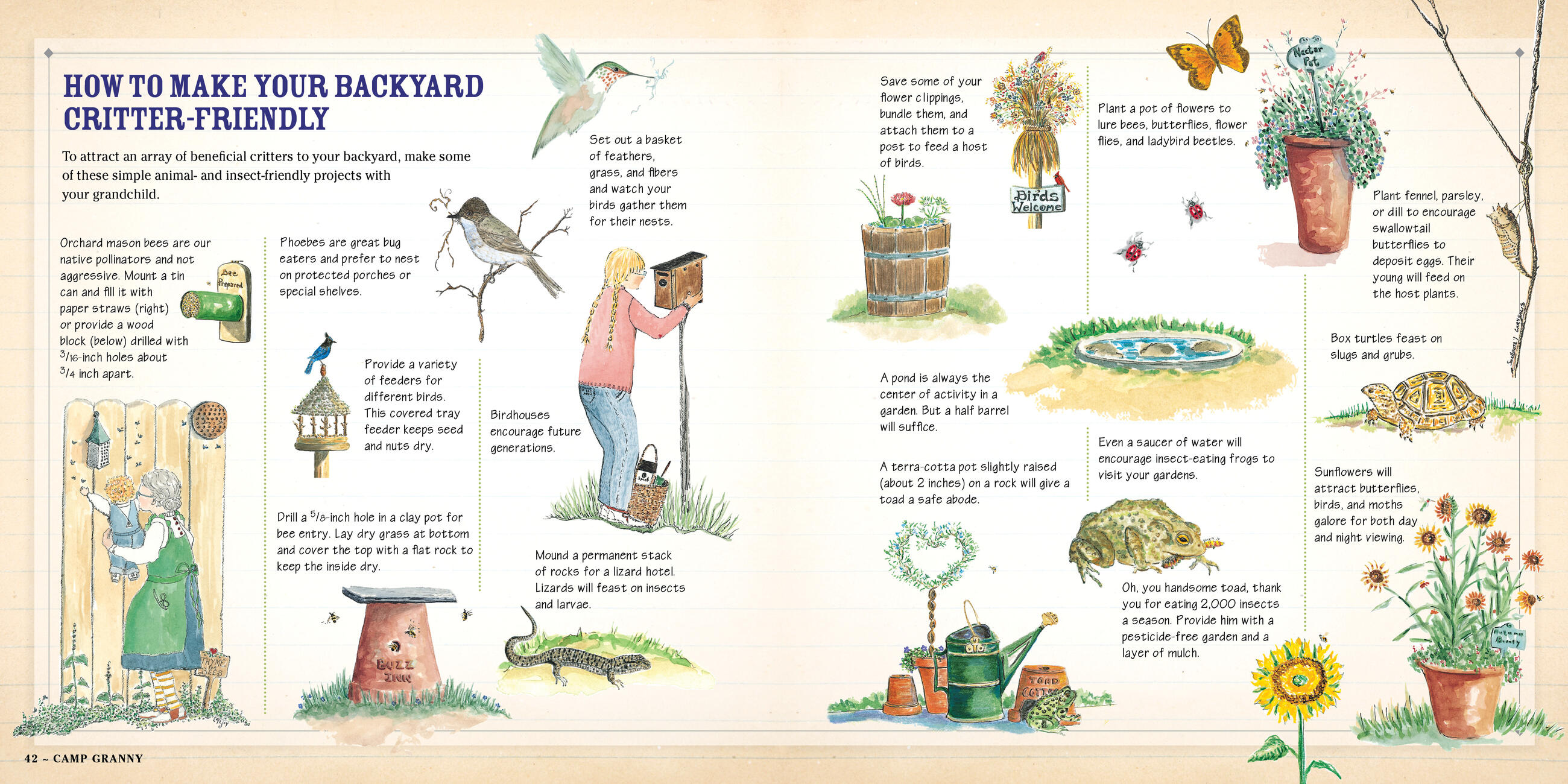 Illustrated with evocative photographs and the author’s watercolors, CAMP GRANNY is a book about being adventurous, about being curious, about noticing and really seeing things—about instilling a lifelong sense of wonder. Please note: CAMP GRANNY was previously sold under the title Toad Cottages & Shooting Stars.