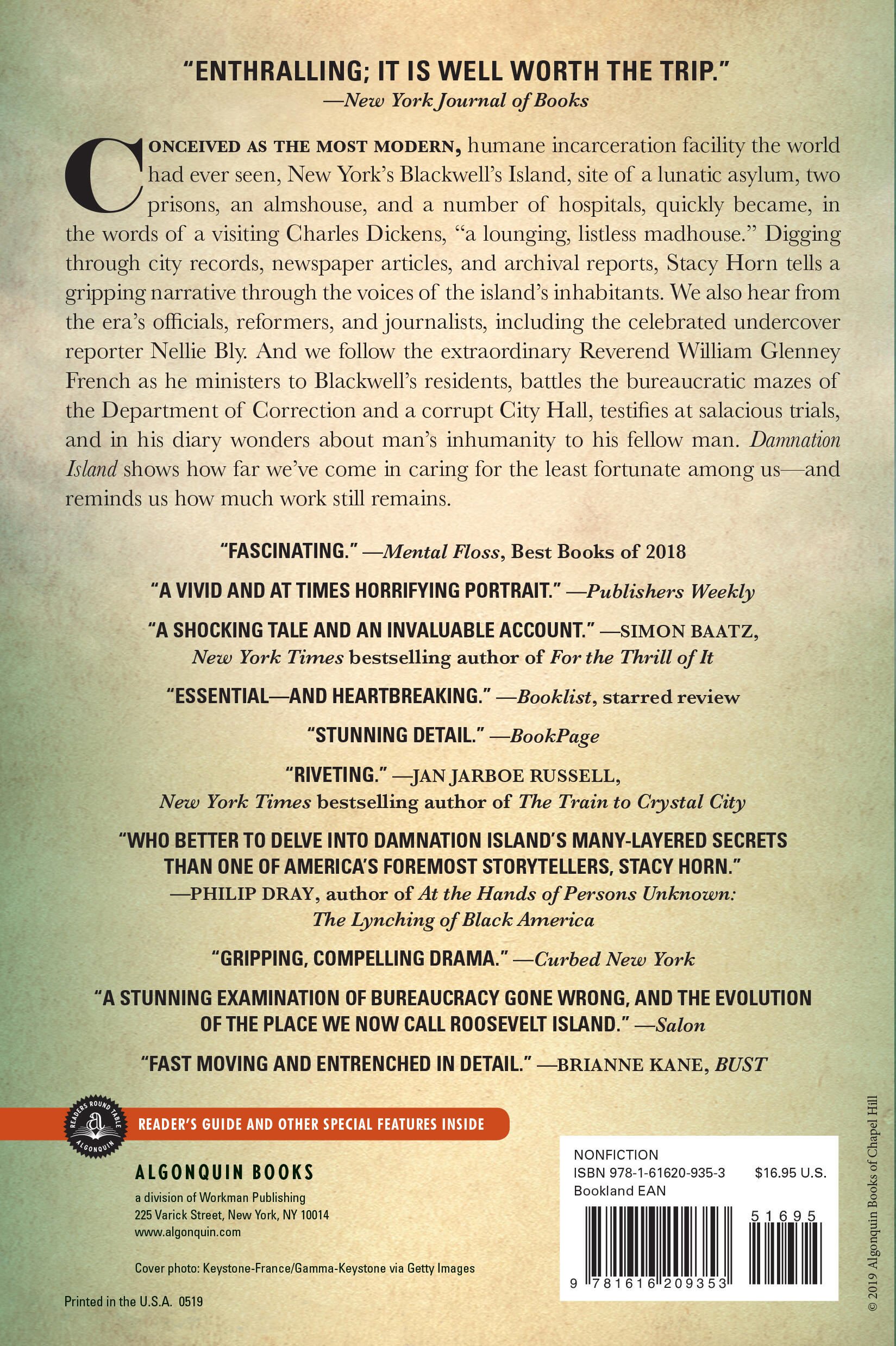 “Revelatory. What occurred during the 19th and early 20th centuries in the prisons, hospitals, and insane asylum on the New York City spit of land that is now home to the fashionable Roosevelt Island constitutes the stuff of nightmares.”