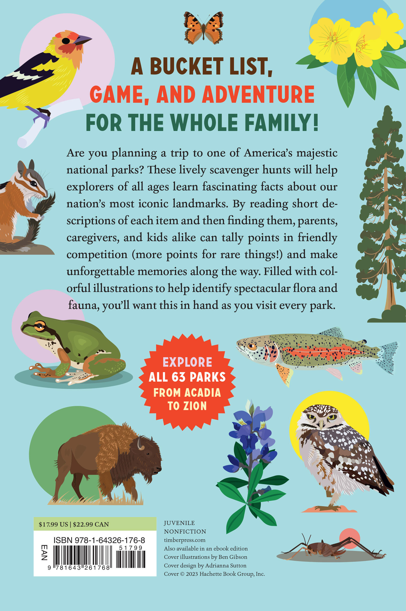 Are you planning a trip to one of America’s majestic national parks? The National Parks Scavenger Hunt will help you explore all 63 parks, from Acadia to Zion. A bucket list, game, and adventure all in one, this book will help adventurers of all ages learn fascinating facts about our nation’s most iconic landmarks. By reading short descriptions of each item and them finding them, parents, caregivers, and kids alike can tally points in a friendly competition and make unforgettable memories along the way. Filled with colorful illustrations to help identify spectacular flora and fauna, you will want this in hand as you visit every park.