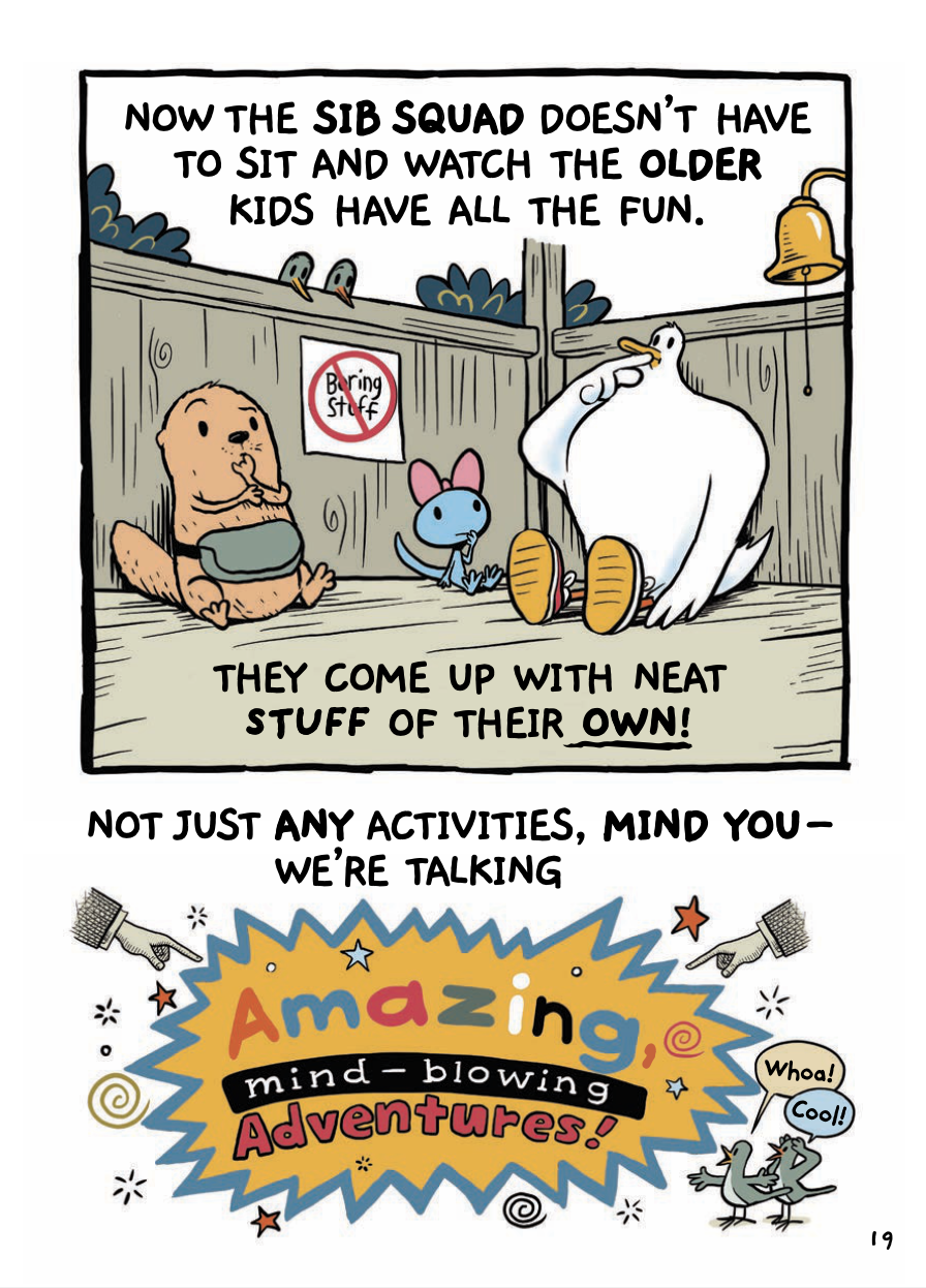 The youngest of seven siblings, Lucy, Bruce, and Oliver are sick and tired of being told that they are too little to do the things their older siblings do. In a bout of bored frustration, they band together to form Sib Squad—a club of their own dedicated to having “amazing, mind-blowing adventures.” And adventures they have! Award-winning cartoonist Steve Breen crafts a riotously fun look at sibling dynamics that will be beloved by downtrodden younger siblings everywhere.