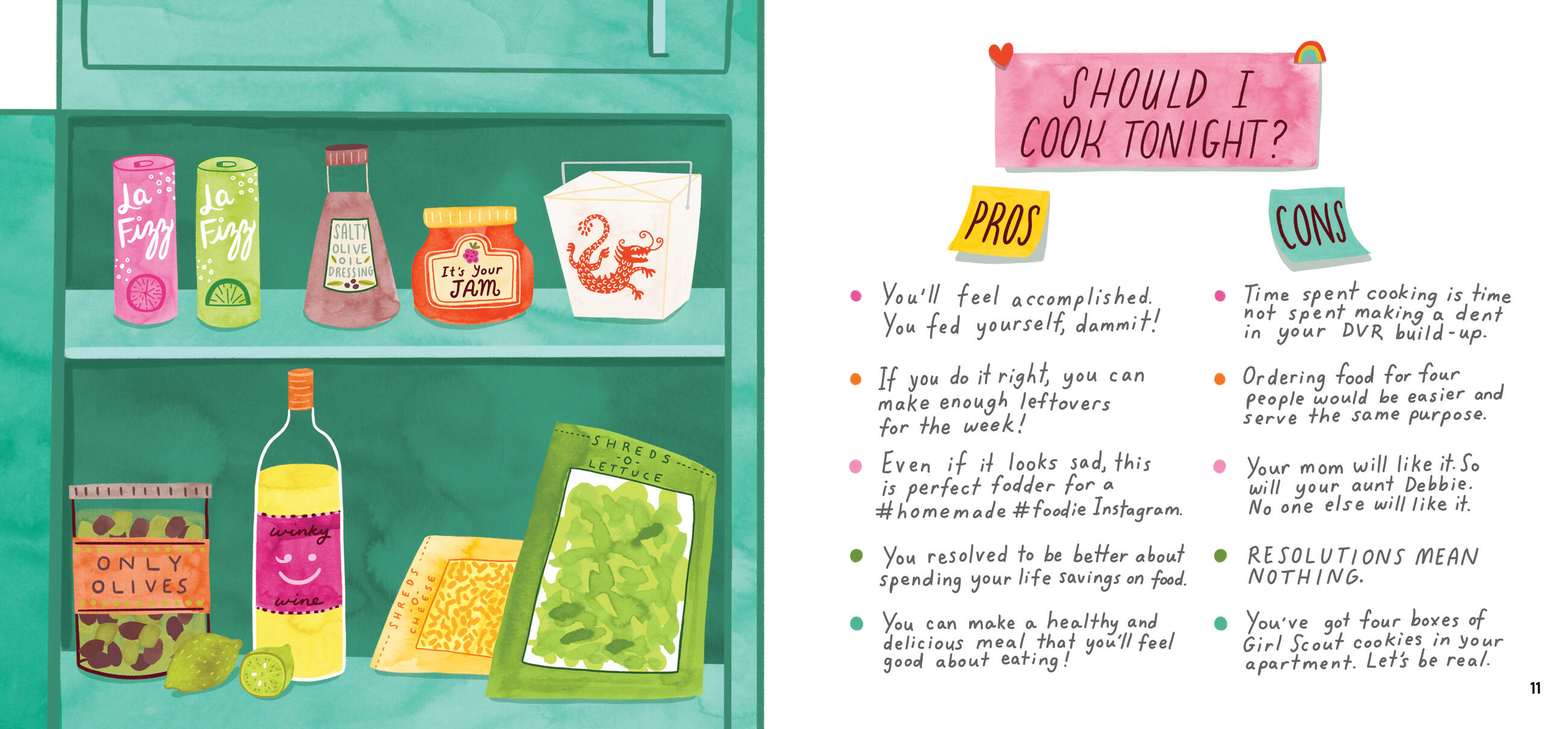 A humorous guide to adulthood in a collection of 54 charmingly illustrated flowcharts and pros-and-cons lists that each address an all-too-real question, from the mundane to the life-changing. Will I survive this hangover? (Probably not.) Should I cancel my plans? (YES! Cancel immediately.) Am I having a quarter-life crisis? (Probably.) Do I even like this person? (Nope, nope, nope.) This inspired book of humor disguised as invaluable advice is a gift to make anyone feel better, proving that every question, thought, and decision, no matter how ridiculous or irresponsible, is completely valid.