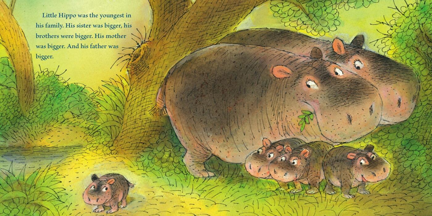 Little Hippo is the youngest in his family . . . and the smallest. Smaller than his parents and siblings. Smaller than his neighbors, too, from old Crocodile to giant Elephant. And even though his mom promises he’ll grow, Little Hippo doesn’t want to wait; he wants to be big RIGHT NOW! But when he helps a creature even tinier than himself, Little Hippo learns that it’s the size of his heart that counts most of all.
