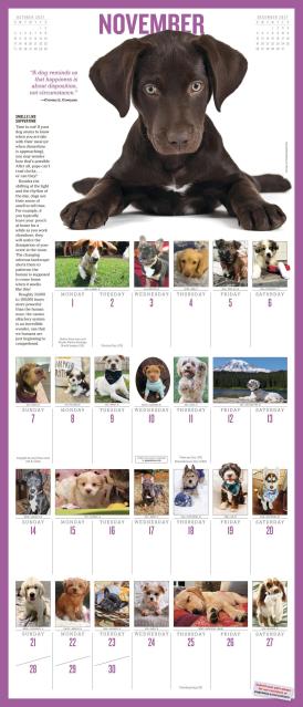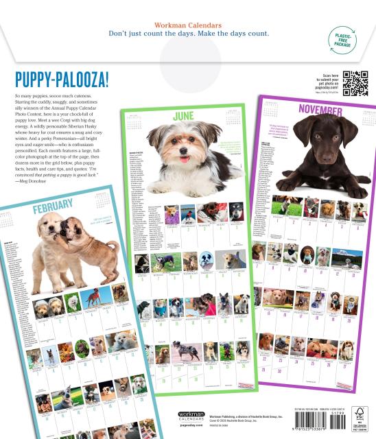 - ALL PUPPIES, ALL THE TIME: Each month features a large full-color photograph at the top of the page and dozens more throughout the grid, plus puppy facts, health and care tips, and quotes.