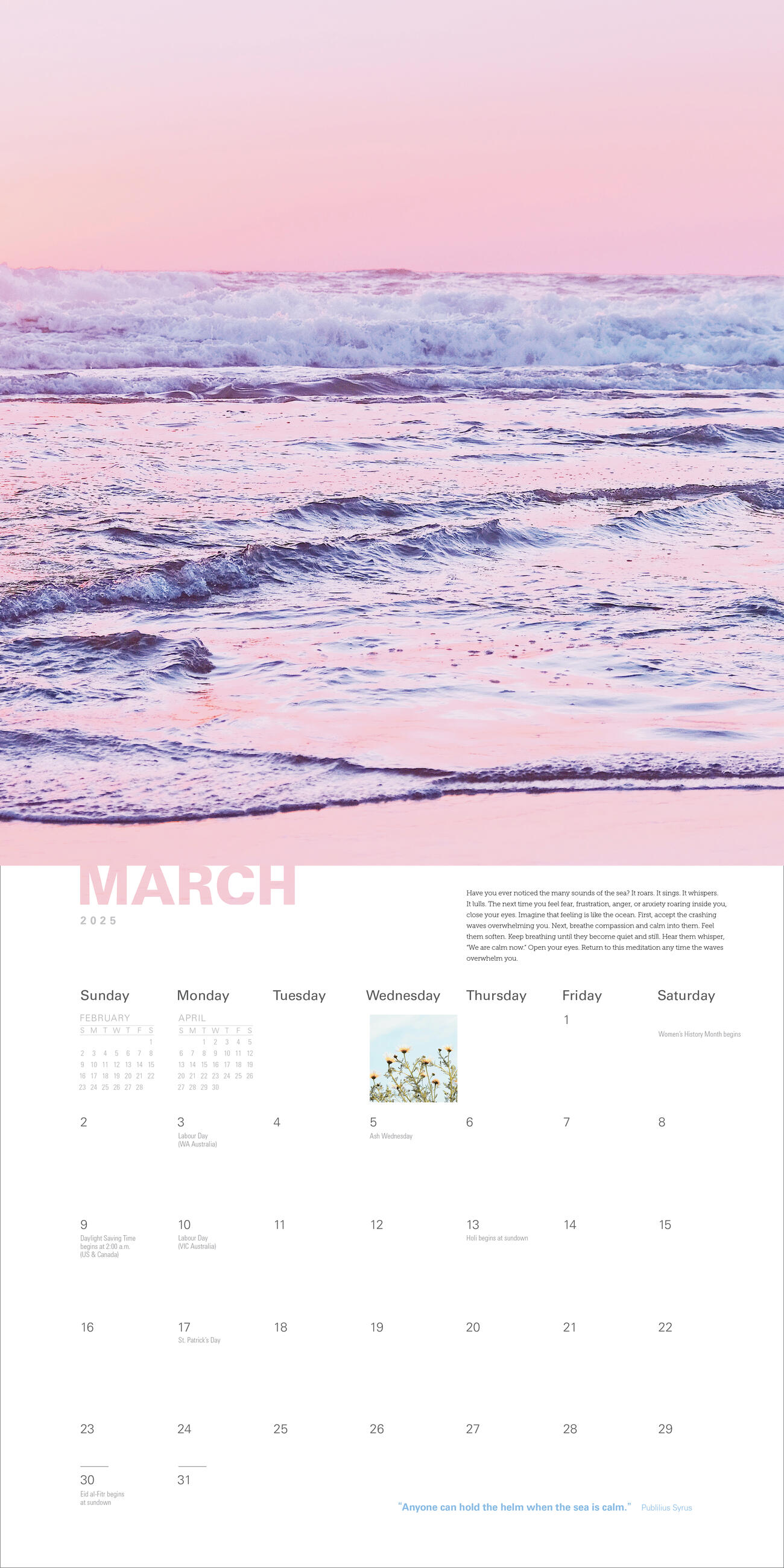 Cultivate tranquility and inner peace with this year of pastel-hued nature photographs and inspirational quotes.