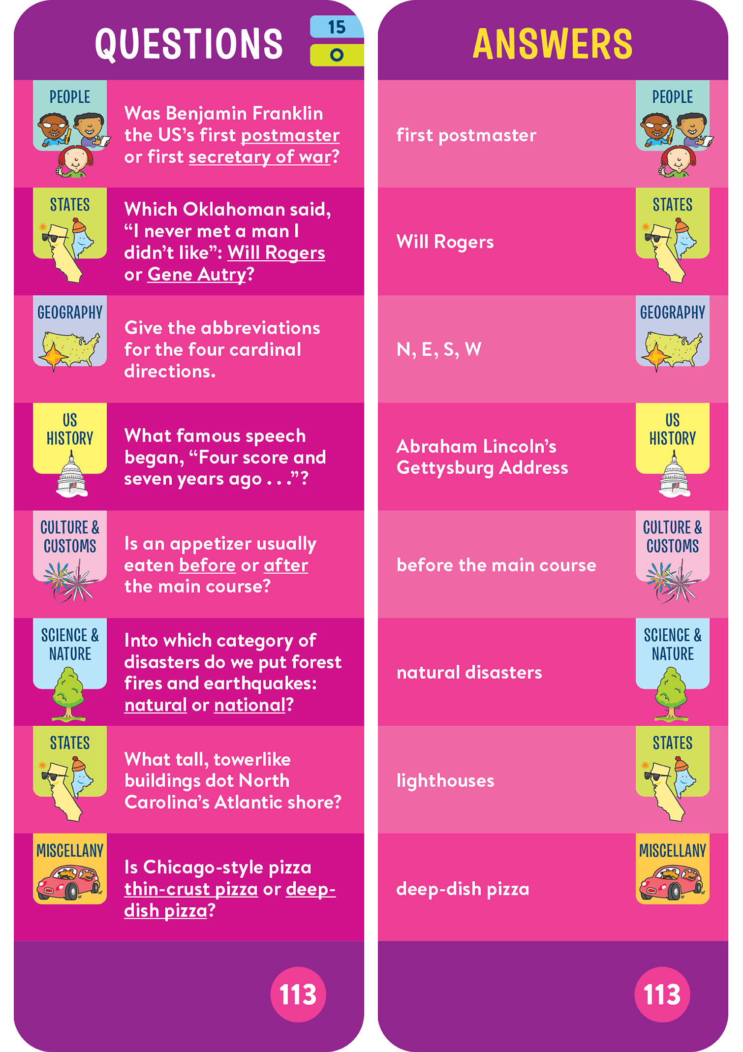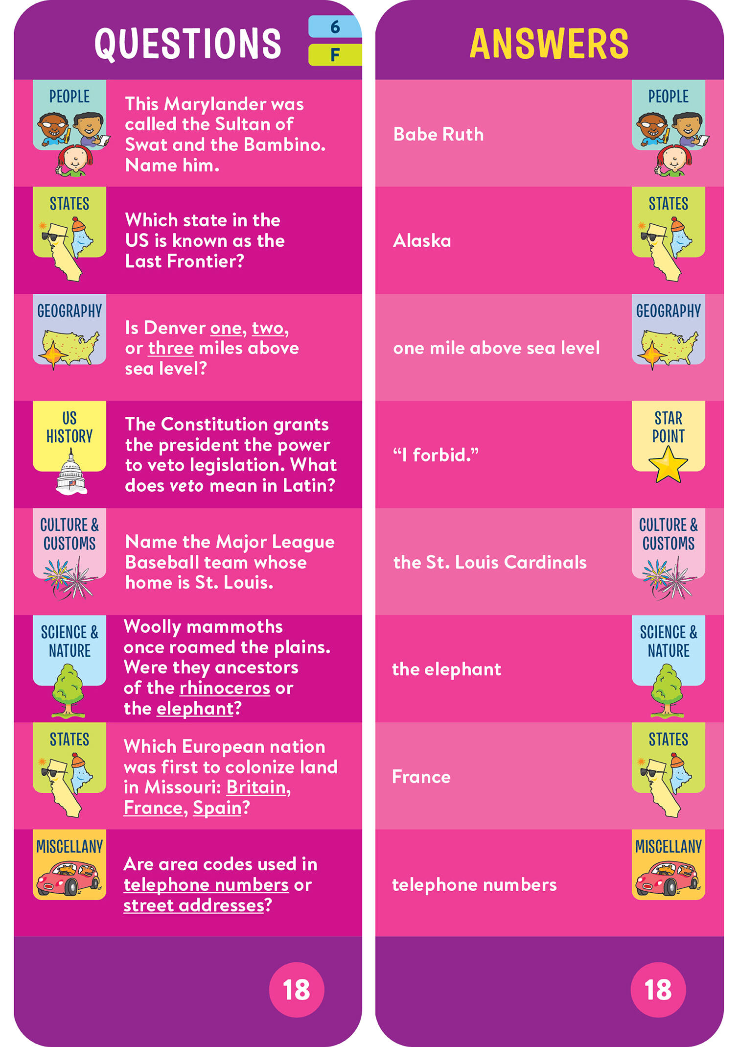 - 1,100 questions and answers covering U.S. history, geography, states and capitals, famous Americans, culture and customs, science and nature, and more