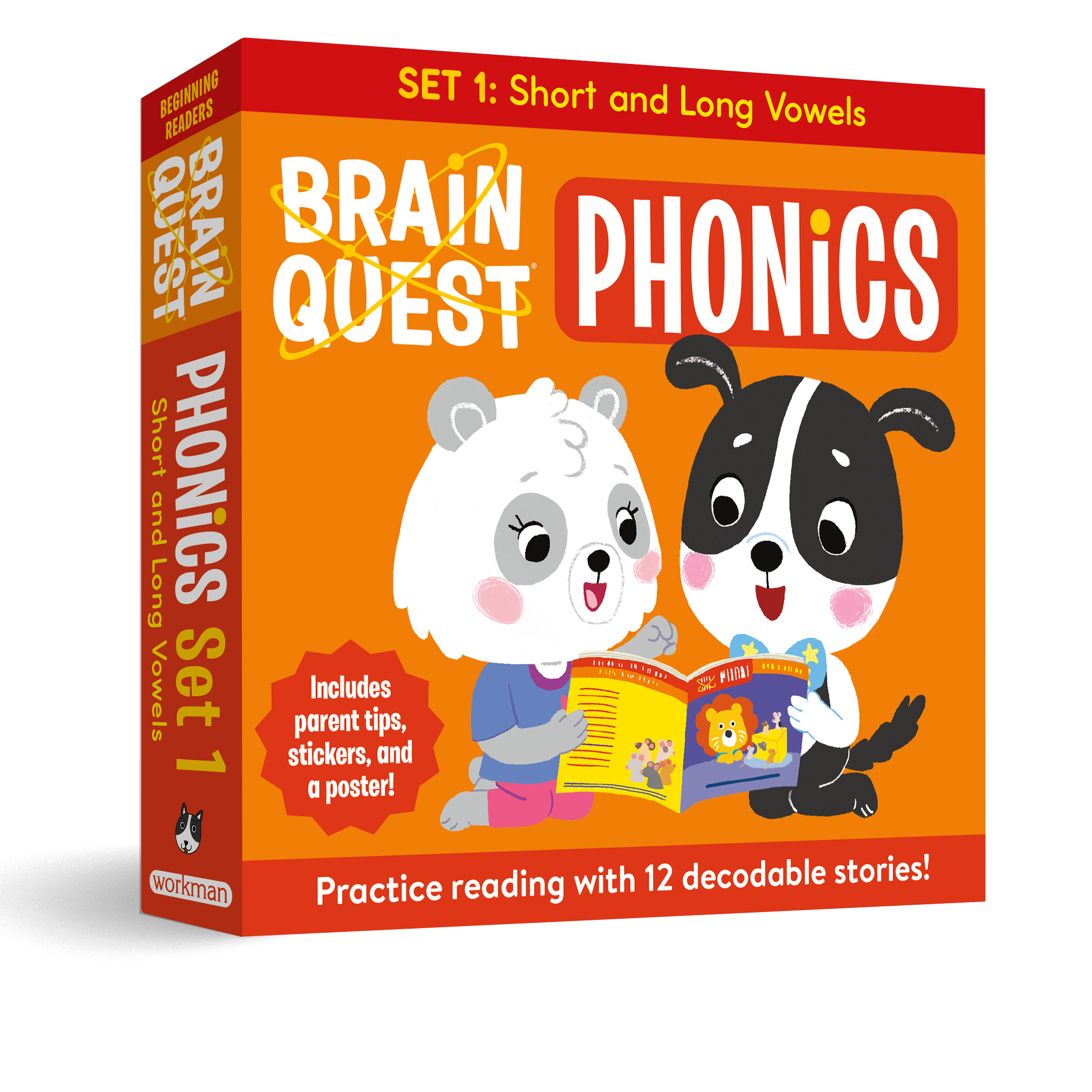 With cute art, silly stories, and simple text, Brain Quest Phonics Readers are written to help kids learn to read. Featuring familiar characters like the Brain Quest mascot Gizmo, Amanda the Panda, and Ryan the Lion, this box set contains decodable fiction and non-fiction books focused on two fundamental phonics skills: short and long vowel sounds. Plus, guiding notes at the beginning and end of each book provide targeted support for caregivers and teachers.