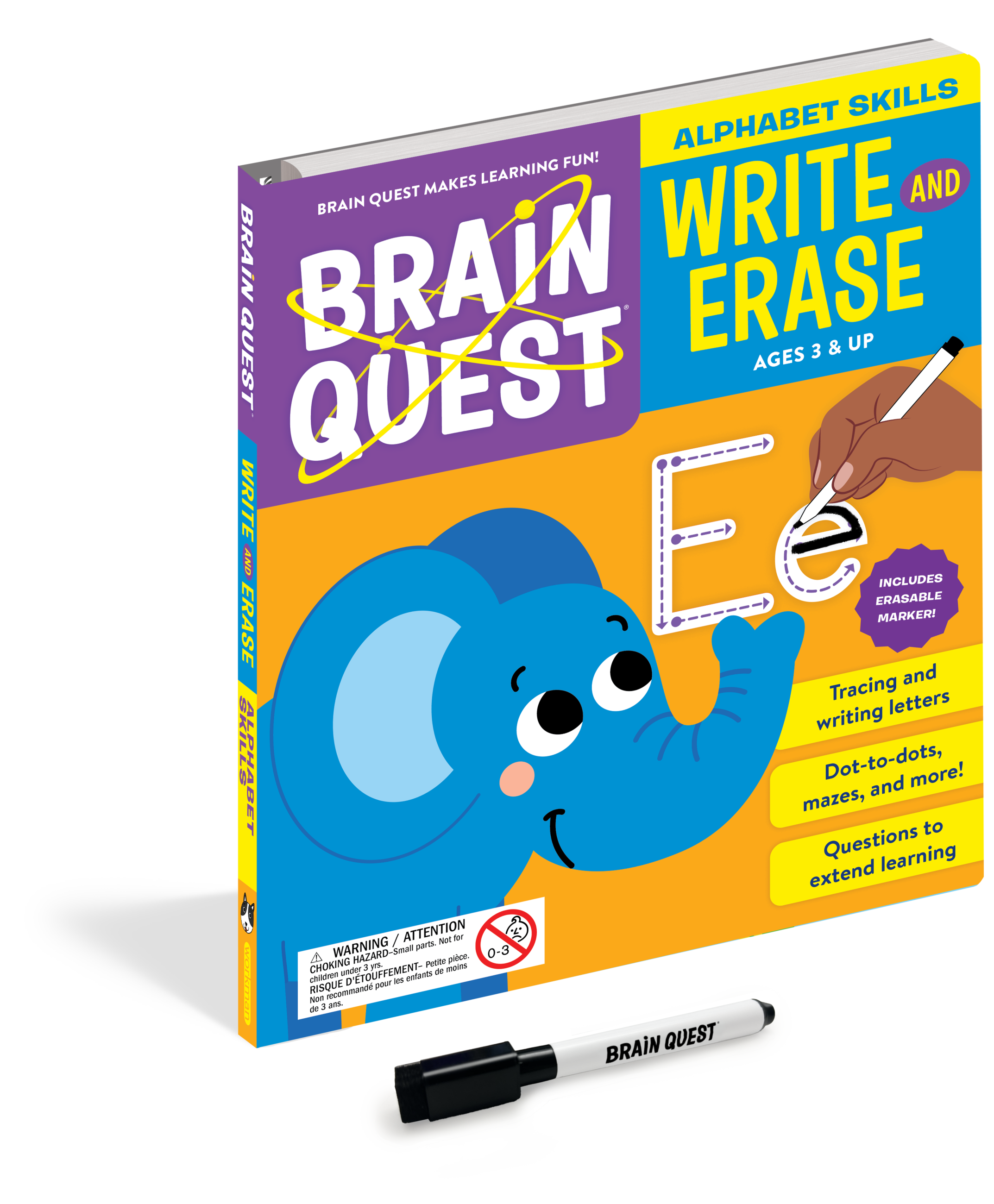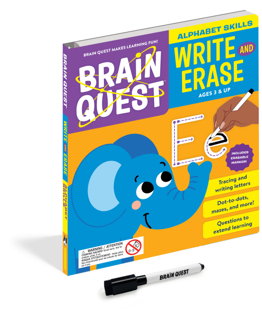 Discover the joy of learning with Brain Quest! From the brand that’s loved by kids, teacher approved, and parent trusted comes Brain Quest Write and Erase: Alphabet Skills. Each spread balances critical practice with fun activities, featuring lots of room for writing along with teacher-approved activities full of colorful, vibrant illustrations. Uppercase and lowercase letters have guiding dots and arrows to support learning, and questions at the bottom of each page provide opportunities to help caregivers support language development and critical-thinking skills.
