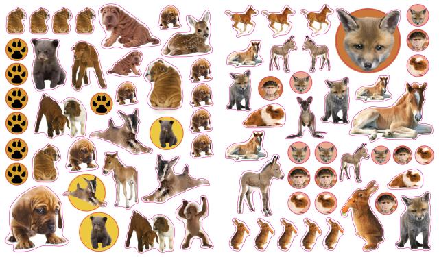 Full-color photographic stickers feature a variety of adorable baby animals, from roly-poly pandas and fluffy bunnies to pink piglets, fuzzy owlets, cuddly puppies, and more! Whether on windows, notebooks, lunch boxes, or scrapbooks, these peel-and-place stickers are perfect for creating your own work of art anytime, anywhere, and are designed to be stuck on, peeled off, and stuck on again without tearing or losing their “stick.” The books’ inside covers are glossy illustrated backgrounds on which kids can create lively and original sticker scenes―and then change them whenever they like.