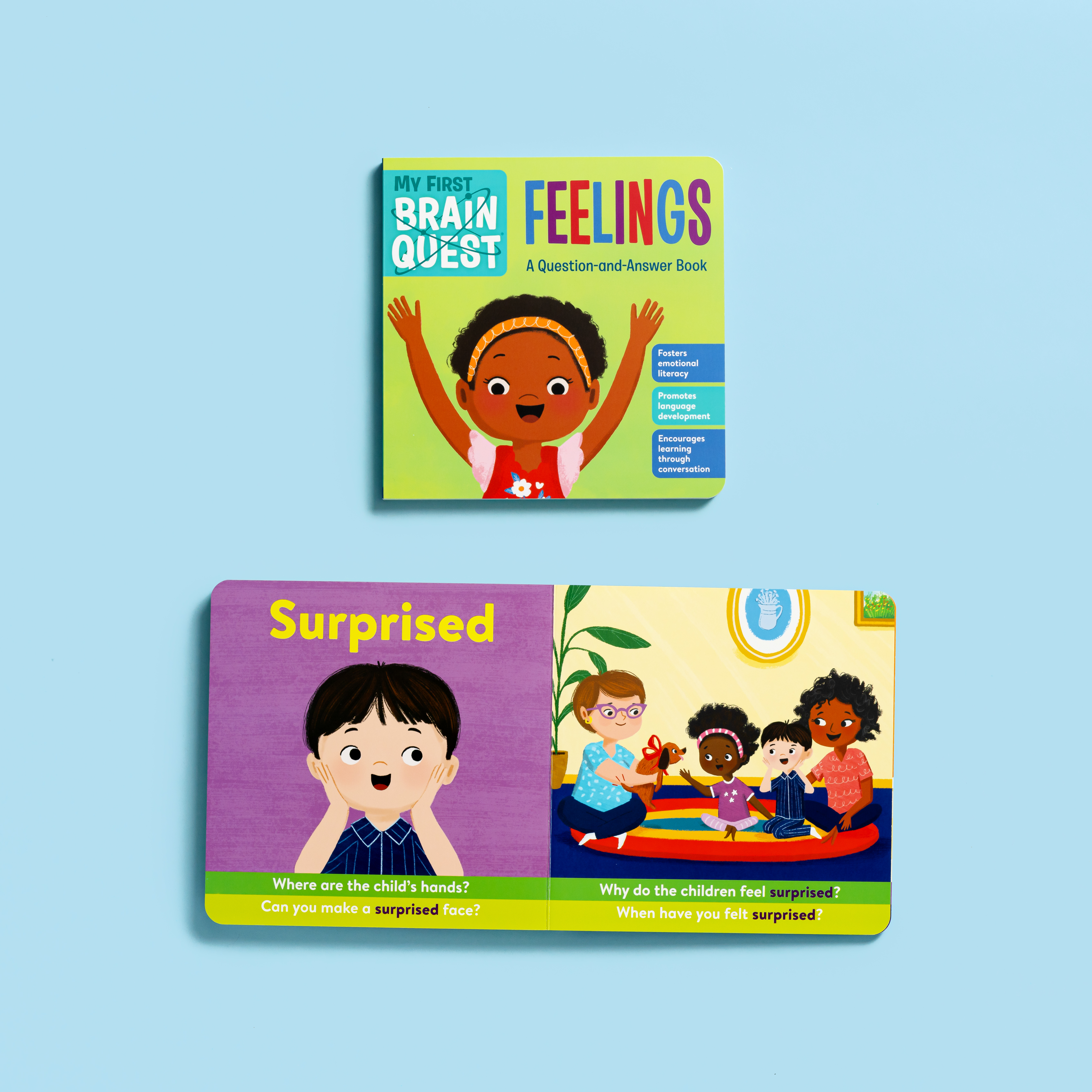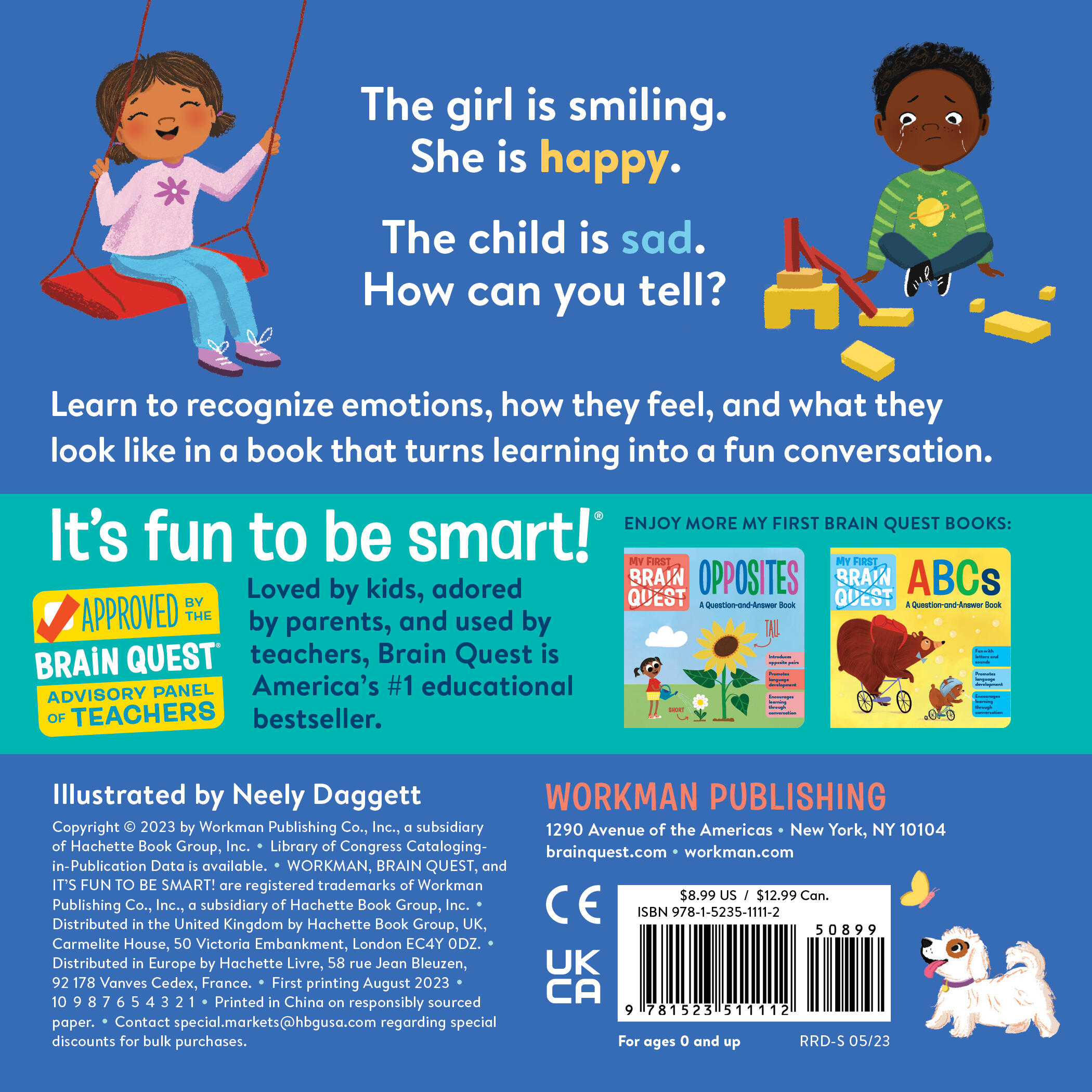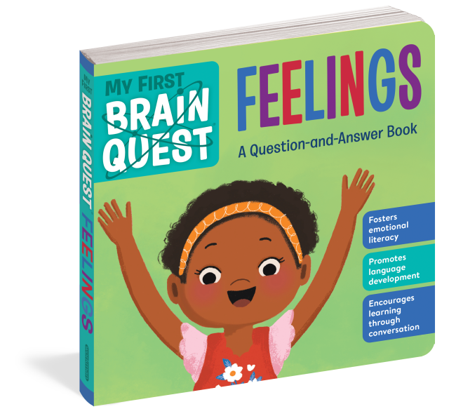 My First Brain Quest: Feelings introduces babies and toddlers to nine core emotions—happy, sad, scared, excited, angry, shy, proud, surprised, and calm—to help develop essential emotional literacy skills, promote social and emotional health, and set a strong foundation for early learning. Each brightly illustrated spread features an emotion in context, spotlighting facial expressions, body language, and social situations. Brain Quest’s signature question-and-answer format encourages self-reflection and gives young readers the opportunity to practice talking about their feelings.