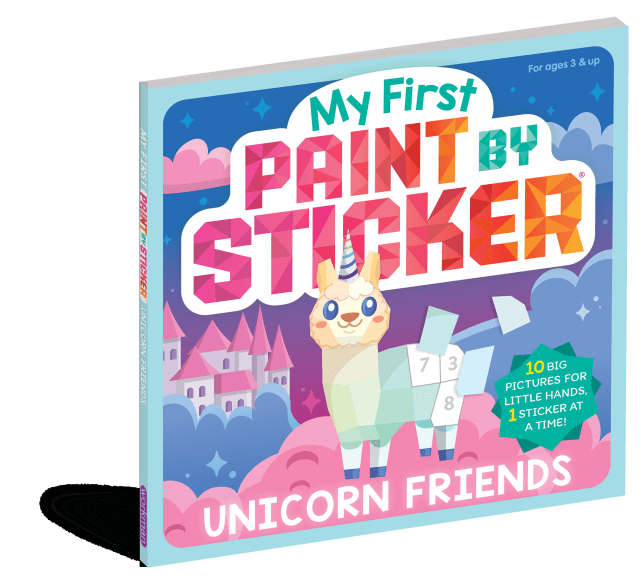 The Paint by Sticker Kids® series (for ages 5 and up) has sold more than 10 million copies to date. In My First Paint by Sticker, readers ages 3 and up can confidently paint by sticker, too! At a smaller trim size (8 x 8 inches, versus the original kids brand at 9 x 9), this brand extension features larger stickers for smaller hands—perfect for kids practicing their fine motor skills and learning to recognize their numbers. In the older kids series, the number of stickers per image ranges from 60-100; in My First, the number of stickers ranges from 17-25—an age-appropriate number to build patience and confidence while fostering independent play.