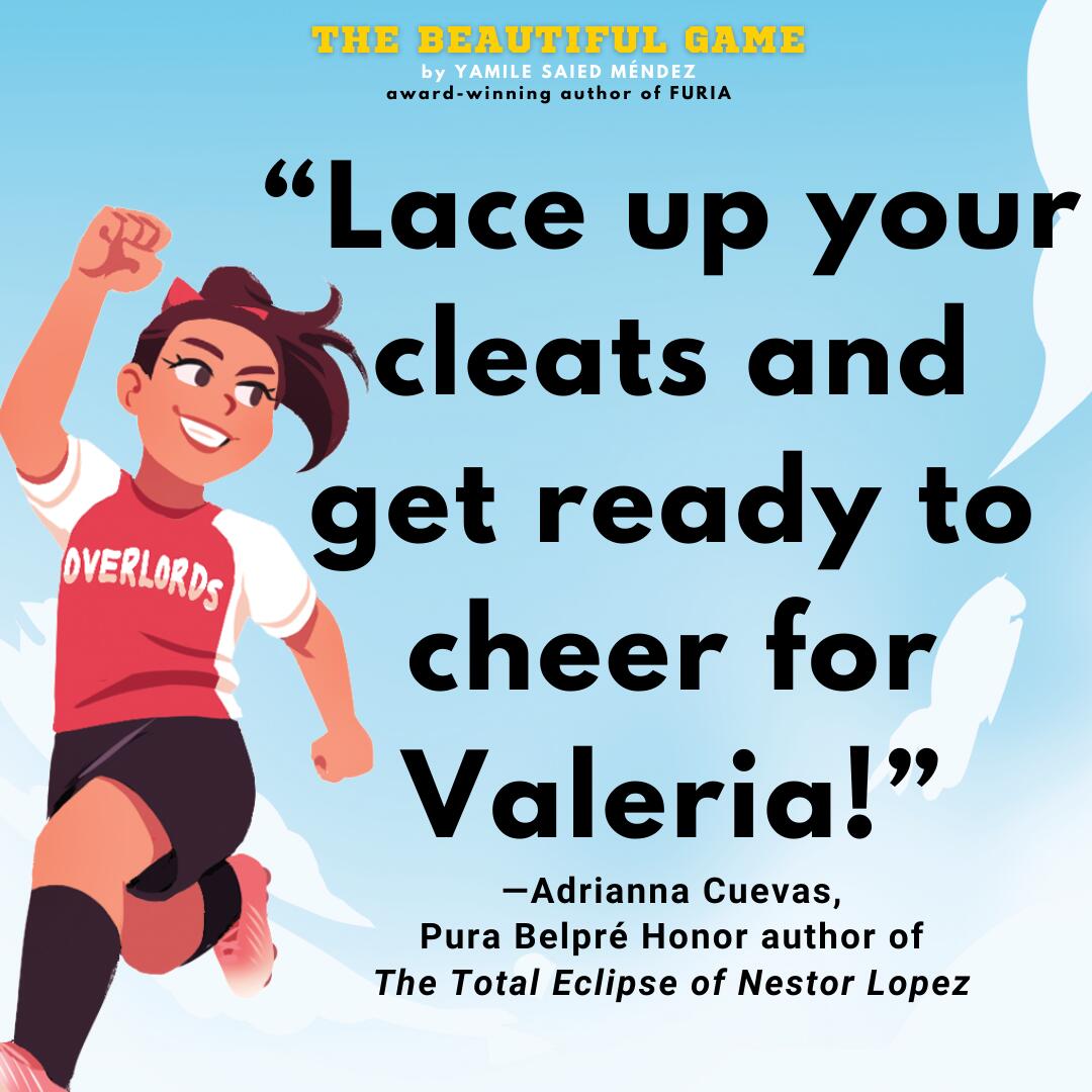 Fútbol fans, rejoice! Yamile Saied Méndez scores the winning goal with this heartfelt story of a young girl learning about herself, her family, and her friends. Lace up your cleats and get ready to cheer for Valeria!Adrianna Cuevas, Pura Belpré honor author of The Total Eclipse of Nestor Lopez